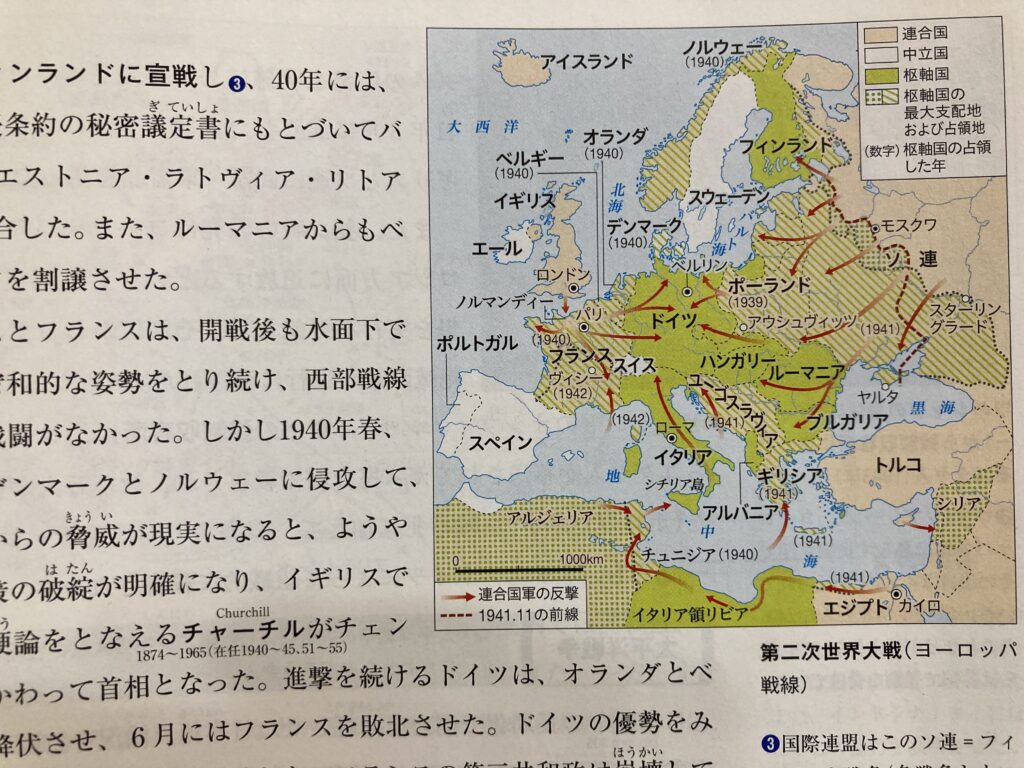ドイツがポーランドに侵攻し、第二次世界大戦が始まる(1939年) ポーランドはドイツ軍に圧倒され、ソ連軍の侵入も受け敗北し、両国間で分割された。ドイツ軍は1940年4月デンマーク・ノルウェーに、5月オランダ・ベルギーに侵入し、さらにフランスに侵攻して6月パリを占領する。
