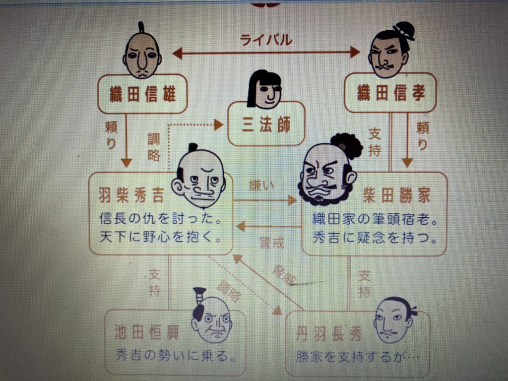 本能寺の変で織田信長と信長の長男信忠が亡くなったことで、織田家の当主を誰にするか豊臣秀吉・柴田勝家・丹羽長秀・池田恒興を中心に清州会議が行われる。
