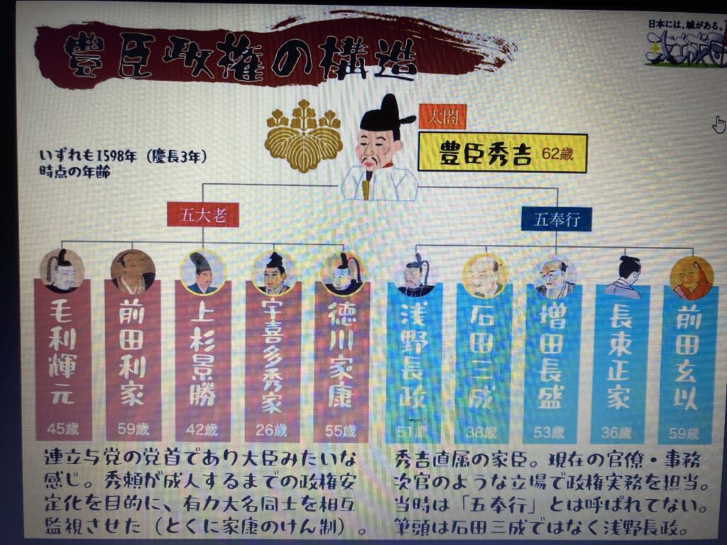 五大老に徳川家康・前田利家・毛利輝元・宇喜多秀家・上杉景勝