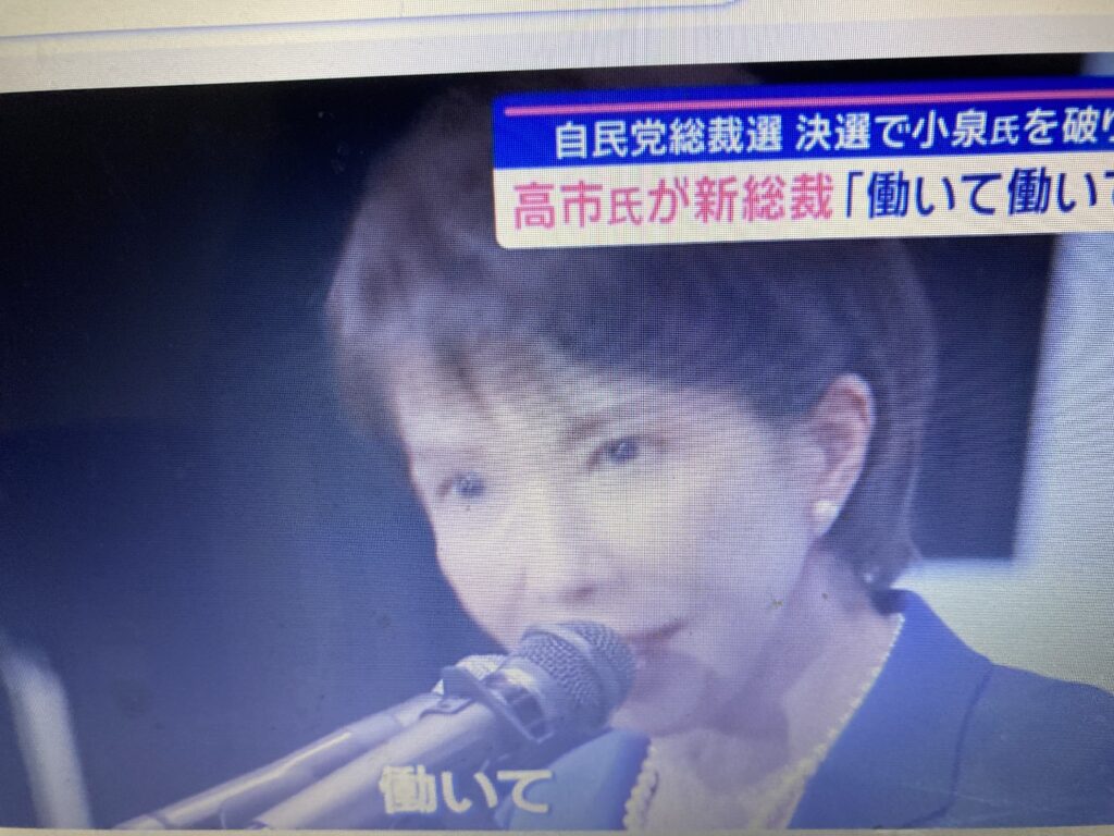 高市早苗さんが自民党総裁に ということは次の首相… 初の女性首相となる 当選後の話では「馬車馬のように働いて、働いて… ワークライフバランは」、と気合が入っていた。今のところは期待できそうだ。